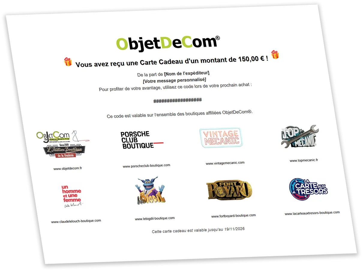 Le montant offert se transforme ensuite en bon d’achat valable sur toutes les boutiques affiliées ObjetDeCom®.